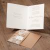 Stijlvolle trouwkaart in een hoesje van kraftpapier met kant