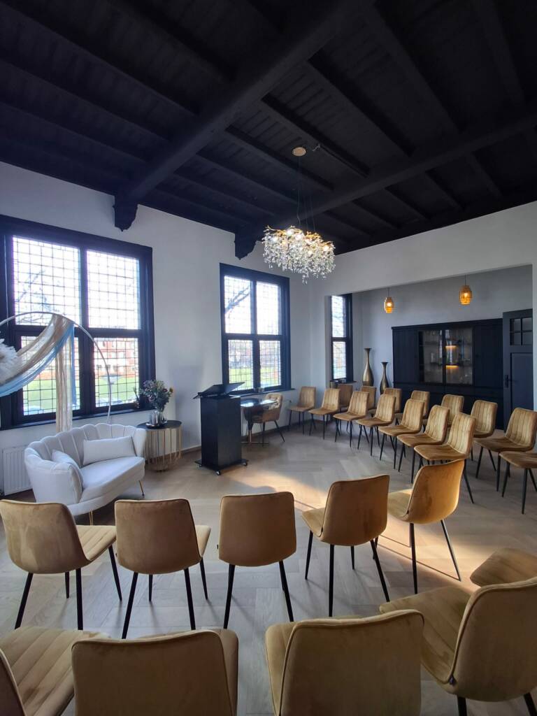 Het voormalige gemeentehuis van Oostvoorne vormt het perfecte decor voor een intieme en stijlvolle huwelijksceremonie. De monumentale trouwzaal ademt elegantie en romantiek — met hoge ramen, authentieke details en een serene sfeer die elk ja-woord bijzonder maakt.